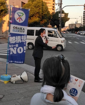 私は府議会議員選挙の選挙公報に「維新を止める」と掲げました。大阪市廃止を止めることができたと言う点では、公約の一部を果たせたのではないかと考えます。しかし、まだまだこれからでもあります。働く仲間を支える政策の実現のためにも、今回の大阪市廃止・特別区設置の住民投票の否決を足掛かりにし、力強く取り組みを進めてまいります。